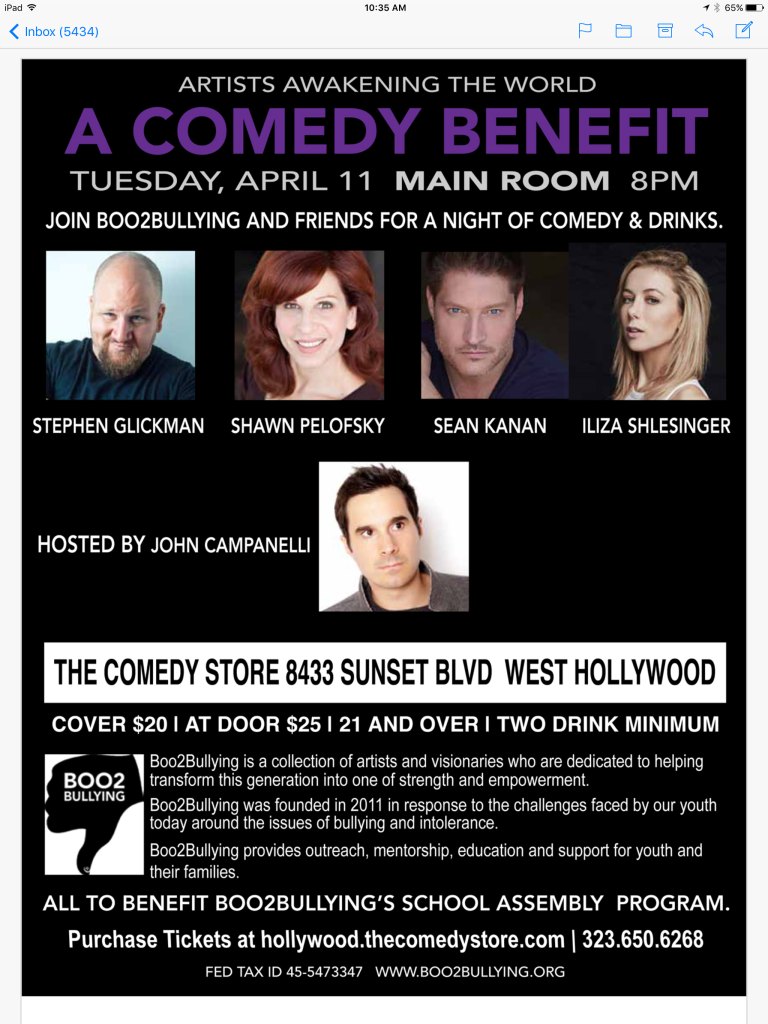 BOLD AND BEAUTIFUL’s Sean Kanan (Deacon) is participating in a comedy benefit at the world famous L.A. landmark, The Comedy Store, on Tuesday, April 11, to benefit Boo2Bullying. “For years I have worked as an impassioned advocate against bullying,” notes the actor. “I currently serve as the young man’s youth ambassador for Boo2Bullying, which has afforded me the opportunity to speak at numerous schools about and against the epidemic of bullying. Please come and join me in supporting a great cause while enjoying a night of laughter!” For ticket information, click here.