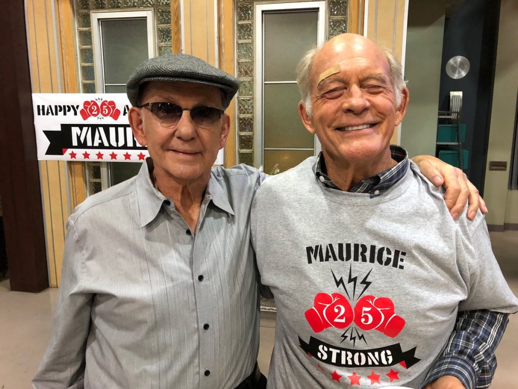 Valentini snapped this pic of Benard’s father, Humberto, l., with on-screen dad Max Gail (Mike).