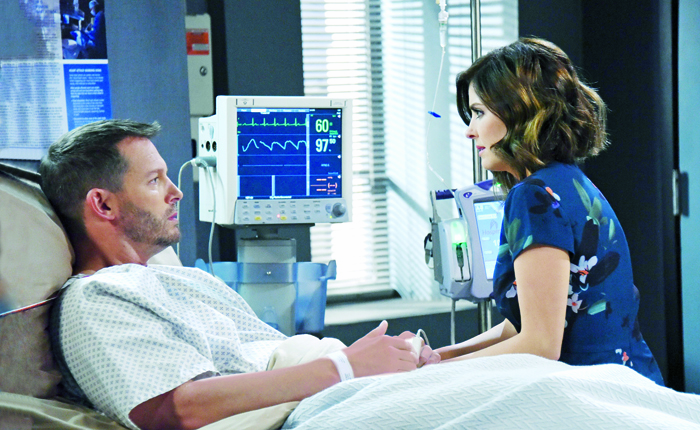 Lilley was happy to get to spend time at the set with Marci Miller (Abigail) this time around. “She had come in just as I was leaving,” recalls the actress. “So we had met right before I left, but during my exit, it was so crazy. One day I had 87 pages, one day I had 72, one day I had 68, 54, I think 47? I remember I had a ludicrous amount of pages and I worked all five days that week. Because I couldn’t cry as Theresa during my exit story — Theresa was constantly playing the game of, ‘Don’t cry in front of Brady; you’ve got to pull it off’ — I had that horrible thing where your heart is in your throat. Every time Marci saw me, I looked like I was going to throw up and she was like, ‘Are you okay?’ and I was like, ‘Yeah, yeah, I’m sorry! I don’t have time to get out of character, but I know that we would be friends!’ We always had mutual respect for each other but never really chatted before we left, so it was really nice getting to know her. I love Marci Miller. She, of course, was in the middle of doing all of her multiple personalities when I came back, so she was in the same boat I was in when I left! We would high five each other in the hall.”