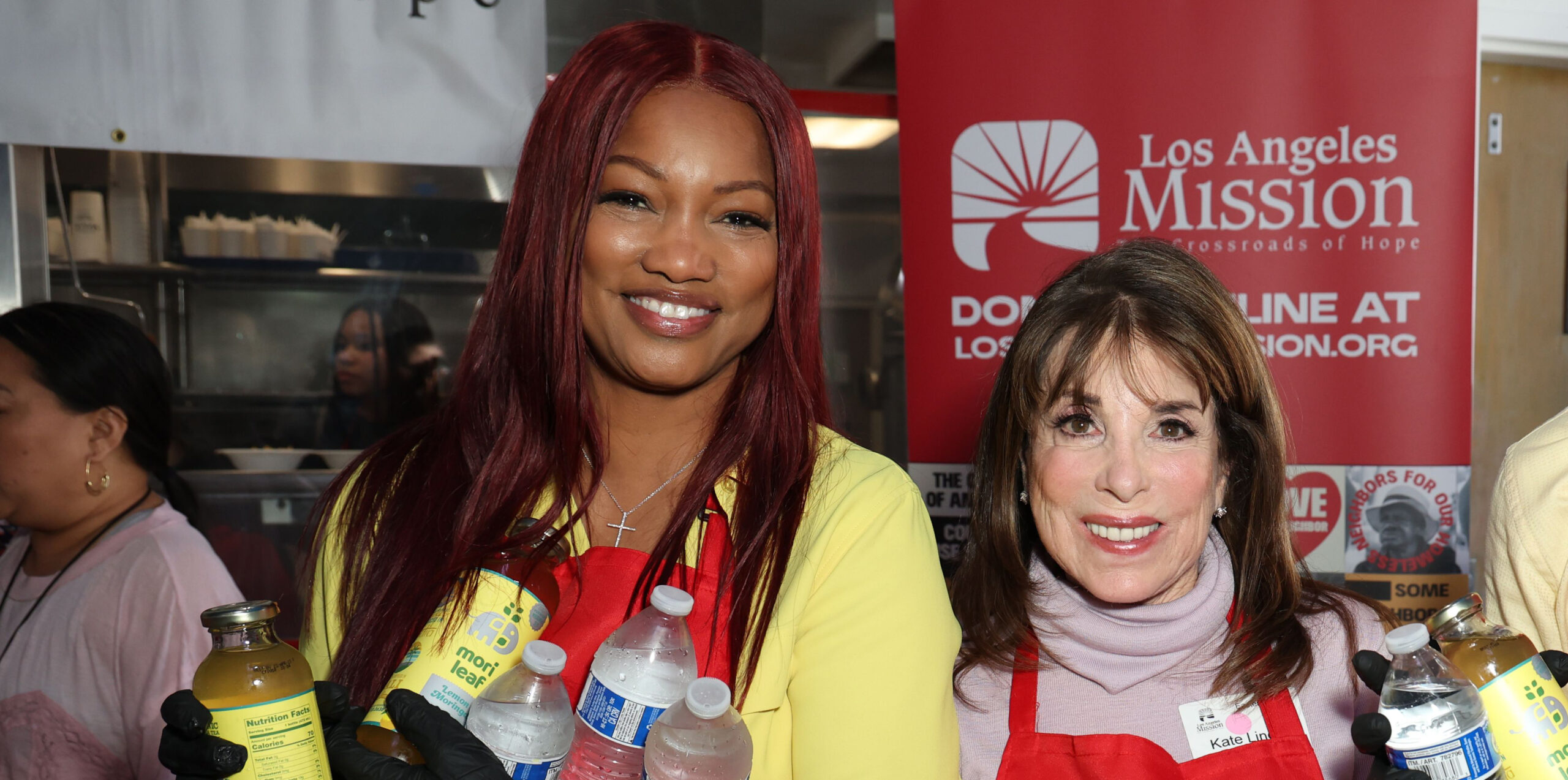 Mandatory Credit: Photo by Chelsea Lauren/Shutterstock (13861218aq) Garcelle Beauvais, BJ Korro and Kate Linder Los Angeles Mission on Easter Sunday, Los Angeles, California, USA - 09 Apr 2023 Chelsea Lauren/Shutterstock Kate Linder (Esther, Y&R, r.) and THE REAL HOUSEWIVES OF BEVERLY HILLS’s Garcelle Beauvais served meals at the Los Angeles Mission on Easter Sunday. -