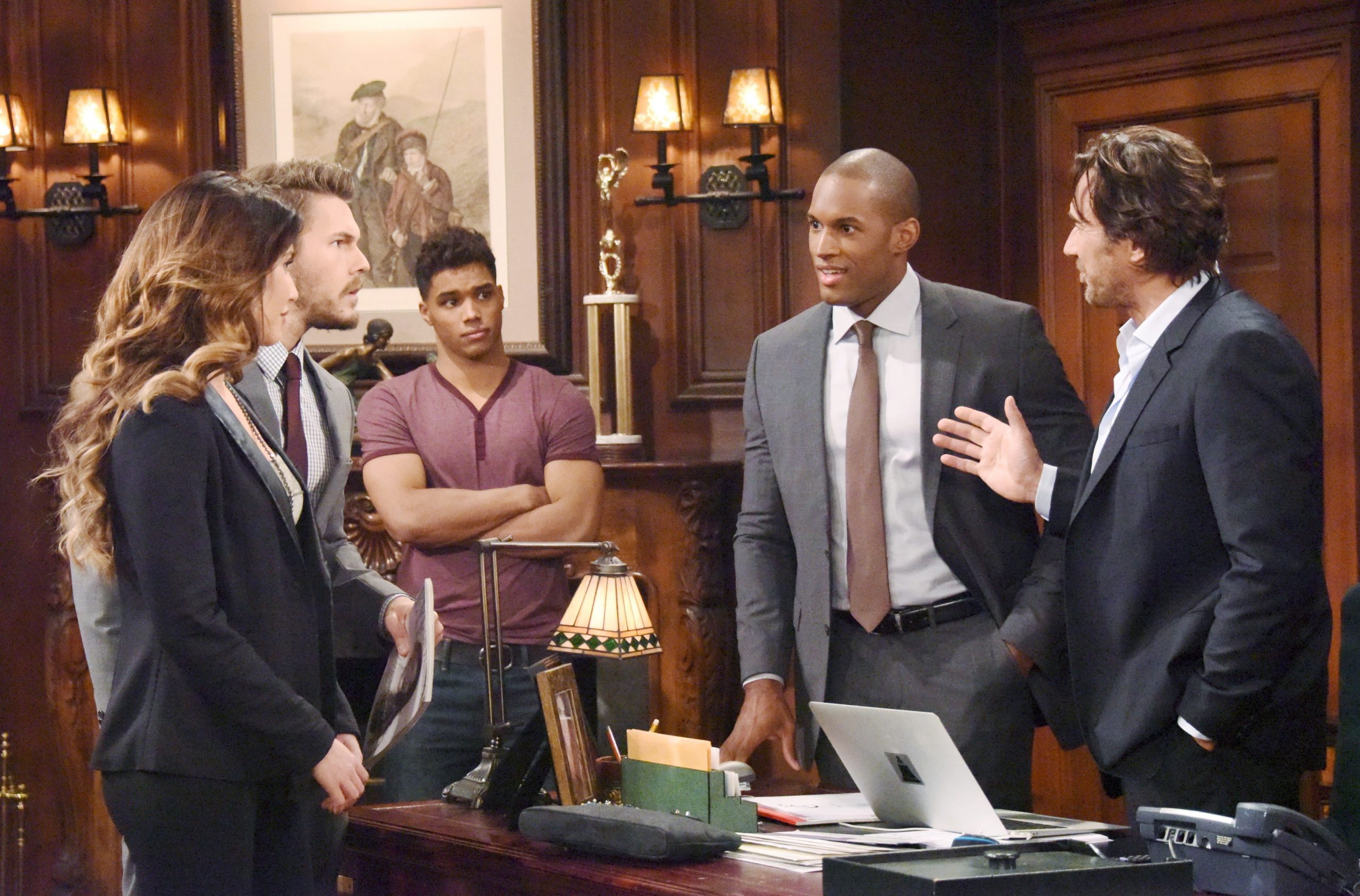 Thorsten Kaye, Scott Clifton, Jacquline MacInnes Wood, Lawrence Saint Victor "The Bold and the Beautiful" Set CBS Television City Los Angeles, Ca. 06/26/15 © Jill Johnson/jpistudios.com 310-657-9661 Episode # 7142 U.S.Airdate 08/13/15 JPI August 2015 Zende became a part of the FC team as a photographer, working alongside (from l.) Steffy (Jacqueline MacInnes Wood), Liam (Scott Clifton), Carter (Lawrence Saint-Victor) and Ridge (Thorsten Kaye). -