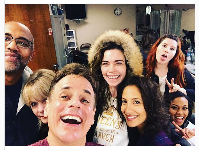Instagram “PANIC AT THE DISCO!! #TEAMYR,” is how Christian J. LeBlanc (bottom l.) captioned this shot with co-stars (from l.) Amelia Heinle (Victoria), Christel Khalil (Lily) and Mishael Morgan (Hilary), and behind the scenes crew, including Makeup Artist Patti Denney and Hairstylist Regina Rodriguez. INSTAGRAM/LEBLANC -