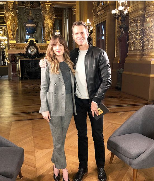 Instagram ENTERTAINMENT TONIGHT correspondent Cameron Mathison (ex-Ryan, ALL MY CHILDREN) snapped this pic in Paris with Fifty Shades Freed star Dakota Johnson. INSTAGRAM/MATHISON -