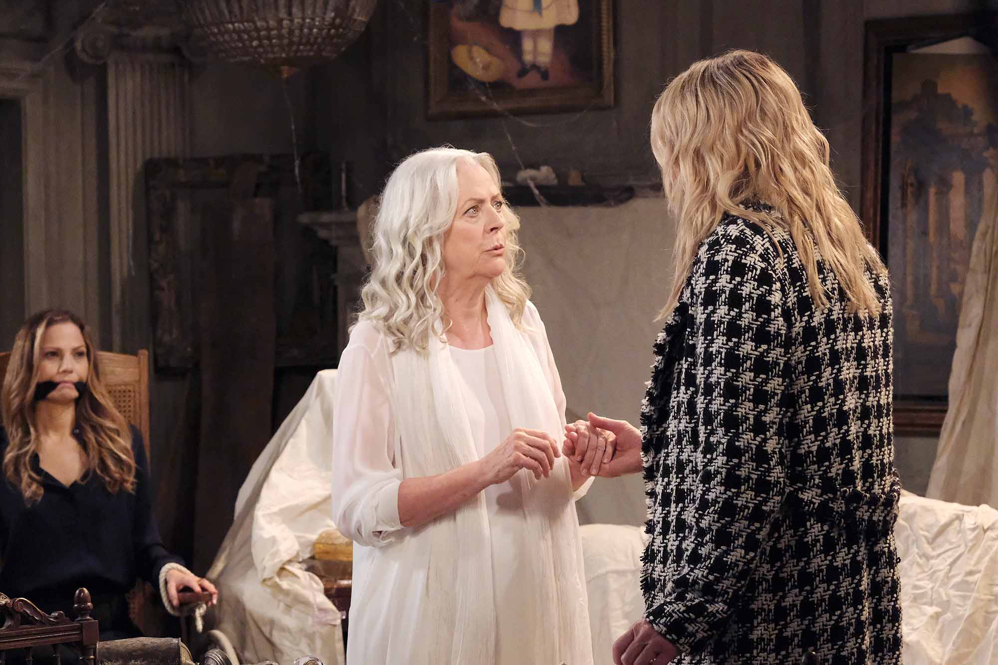 On the Monday, February 10 episode of Days of our Lives, spoilers tease that Kristen (Stacy Haiduk) is shocked to realize her mother is alive and holding Ava (Tamara Braun) captive while Brady (Eric Martsolf) teams up with Steve (Stephen Nichols) to find Ava. Also, Jada (Elia Cantu) accuses EJ (Dan Feuerriegel) of setting her up. Lastly, Paulina (Jackée Harry) gives Belle (Martha Madison) unsettling news. Click on the gallery to see a sneak peek of the upcoming action and click here to see the promo for this week.