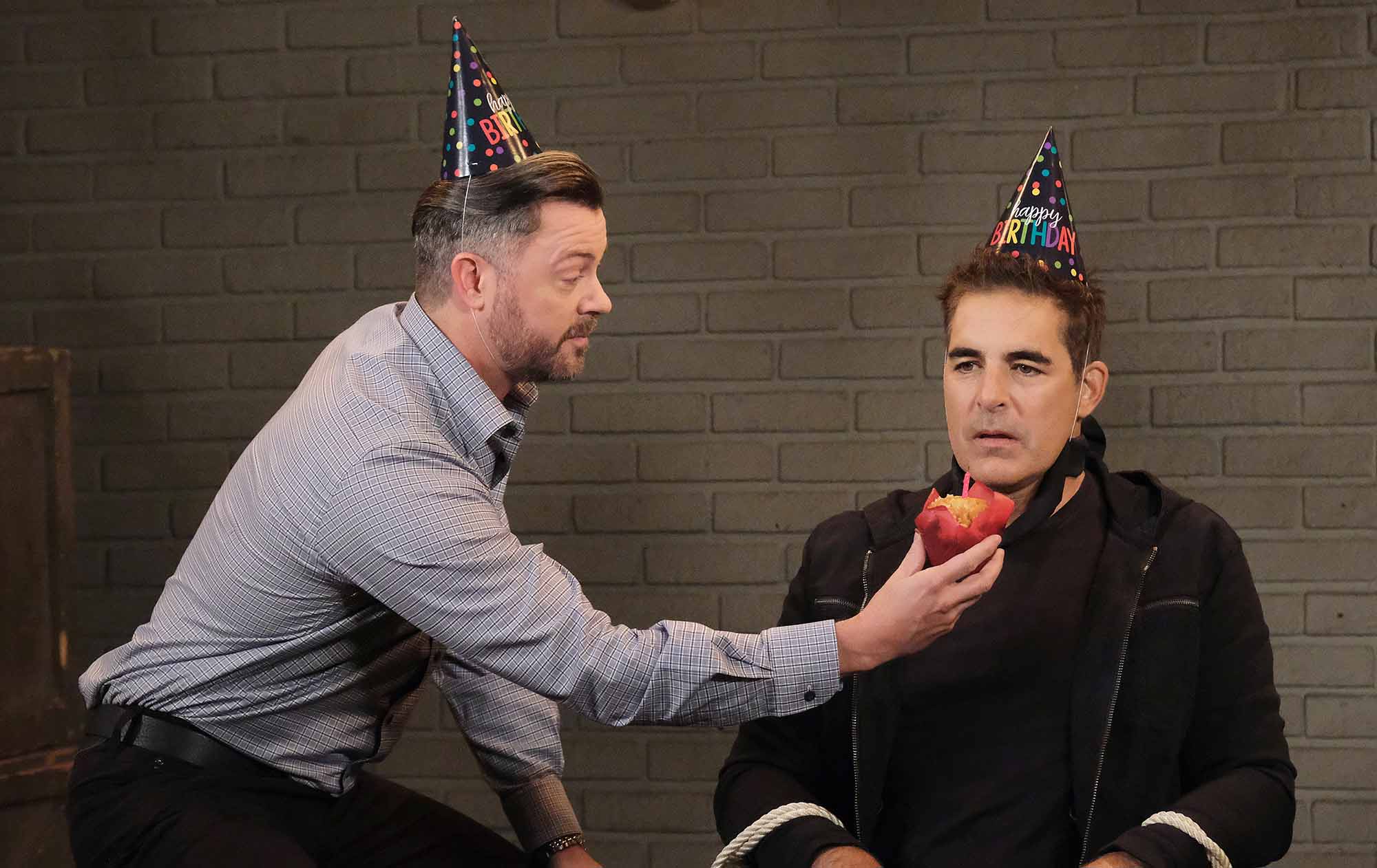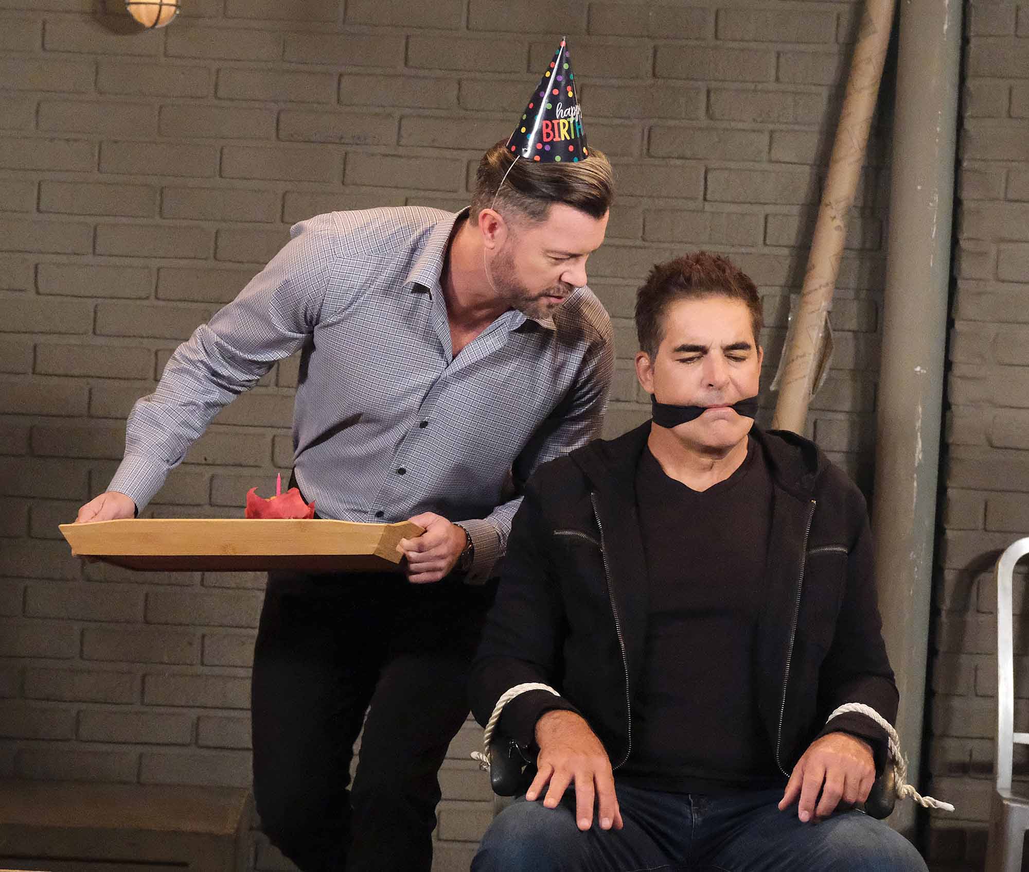 On the Thursday, January 30 episode of Days of our Lives, spoilers tease that Marlena (Deidre Hall) questions Leo’s (Greg Rikaart) actions. Also, Arnold (Galen Gering), while posing as Rafe, coerces Javi (Al Calderon) to remain mum as Jada (Elia Cantu) shares a confidence with Stephanie (Abigail Klein). Lastly, JJ (Casey Moss) is hesitant with Gabi (Cherie Jimenez) while EJ (Dan Feuerriegel) toys with a tied-up Rafe. Click on the gallery to see a sneak peek of the upcoming action and click here to see the promo for this week.