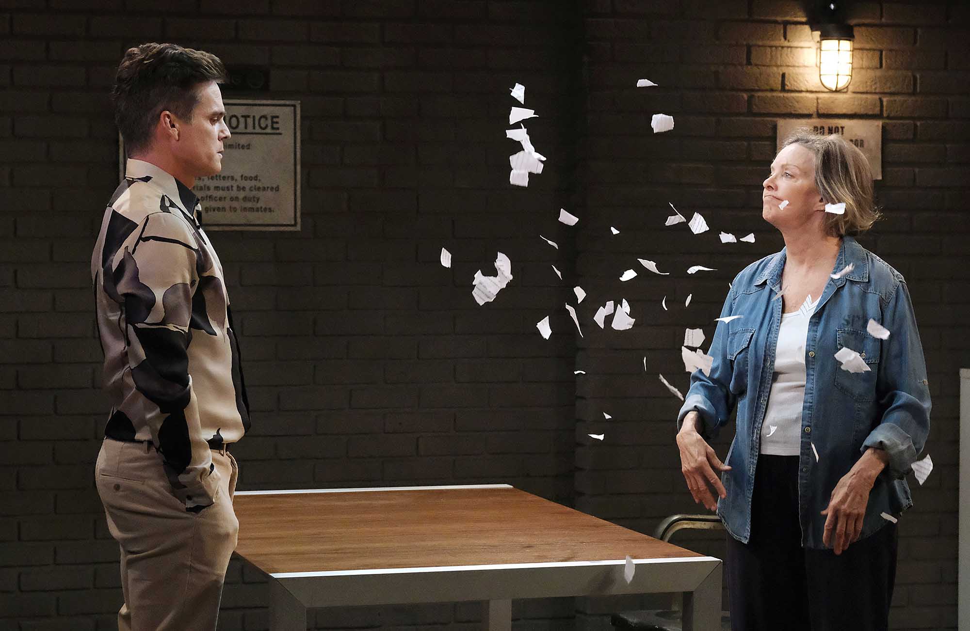 On Days of our Lives Tuesday, June 25, spoilers tease that Leo (Greg Rikaart) visits his mother, Diana (Judith Chapman, interviewed here), in prison. Leo has a lot to say to his mom now that he’s been in therapy. Chanel (Raven Bowens) and Johnny (Carson Boatman) experience a crisis and receive troubling news regarding the baby (check out this preview). Chad (Billy Flynn) digs deeper into Abigail’s fate. Lucas (Bryan Dattilo) shares an emotional goodbye with Kate (Lauren Koslow). Click on the gallery to see a sneak peek of the upcoming Salem action and you can watch the weekly spoilers video here.