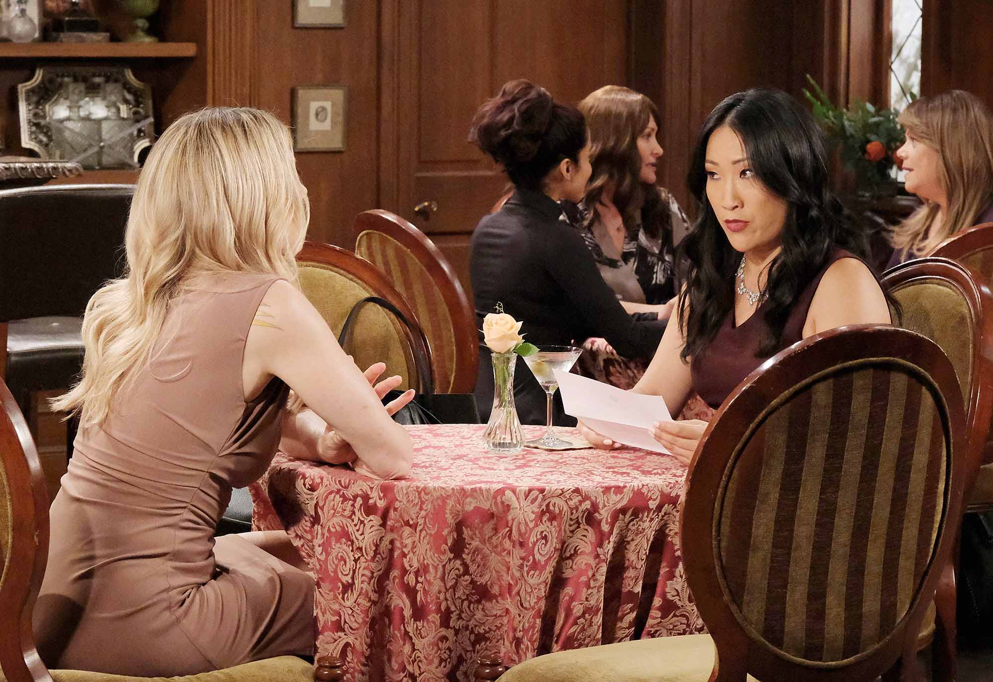 On the Friday, March 21, episode of Days of our Lives, spoilers tease that Jada (Elia Cantu) and Rafe (Galen Gering) have a lot to look forward to. Also, Julie (Susan Seaforth Hayes) is shocked to see her grandmother’s missing necklace on Melinda’s (Tina Huang) neck while Holly (Ashley Puzemis) is there for an upset Tate (Leo Howard). Lastly, EJ (Dan Feuerriegel) looks for a permanent solution to his Rachel Blake (Ros Gentle) problem. Click on the gallery to see a sneak peek of the upcoming action and click here to see the full promo for this week.