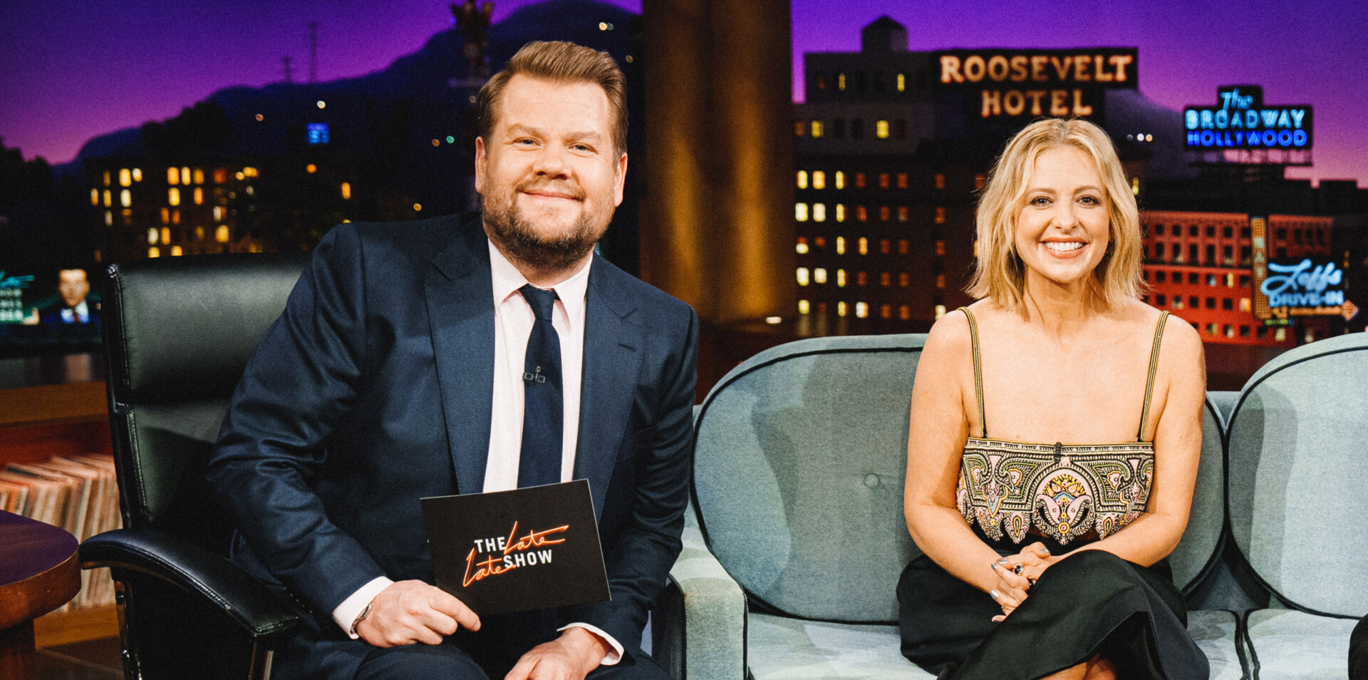 The Late Late Show with James Corden airing Monday, March 13, 2023, with guests Sarah Michelle Gellar and Sam Claflin. Photo: Terence Patrick ©2023 CBS Broadcasting, Inc. All Rights Reserved CBS Sarah Michelle Gellar (ex-Kendall, ALL MY CHILDREN) appeared on THE LATE LATE SHOW WITH JAMES CORDEN on March 13. -