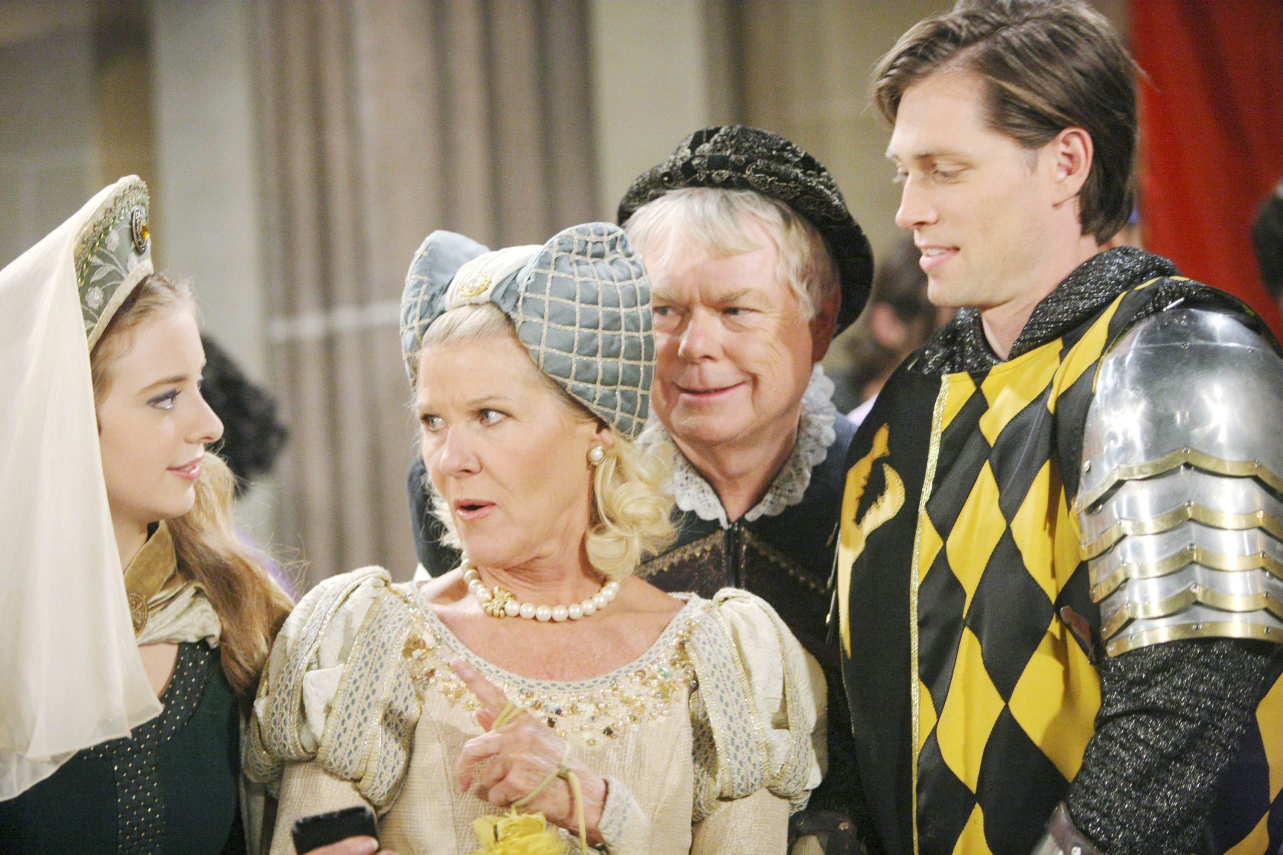 Alley Mills, Dick Christie, Ashlyn Pearce, Zack Conroy "The Bold and the Beautiful" Set CBS Television City Los Angeles, Ca. 05/21/14 © sean smith/jpistudios.com 310-657-9661 Episode # 6871 U.S.Airdate 07/18/14 JPI July 2014: Pam and Charlie found friends in Aly (Ashlyn Pearce) and Oliver (Zack Conroy), who shared their love of medieval times. -