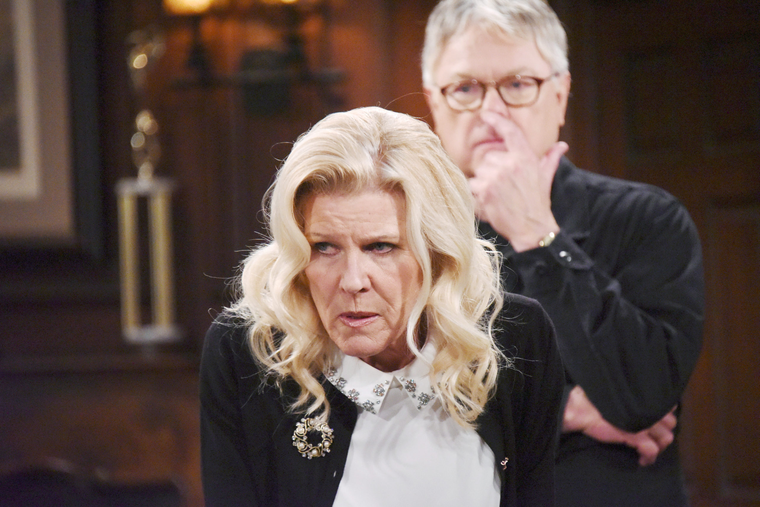 Alley Mills, Dick Christie "The Bold and the Beautiful" Set CBS Television City Los Angeles, Ca. 01/29/18 © Howard Wise/jpistudios.com 310-657-9661 Episode # 7790 U.S.Airdate 03/06/18 JPI March 2018: Charlie feared the worst when Pam went off her meds and became a suspect in Bill’s shooting. -