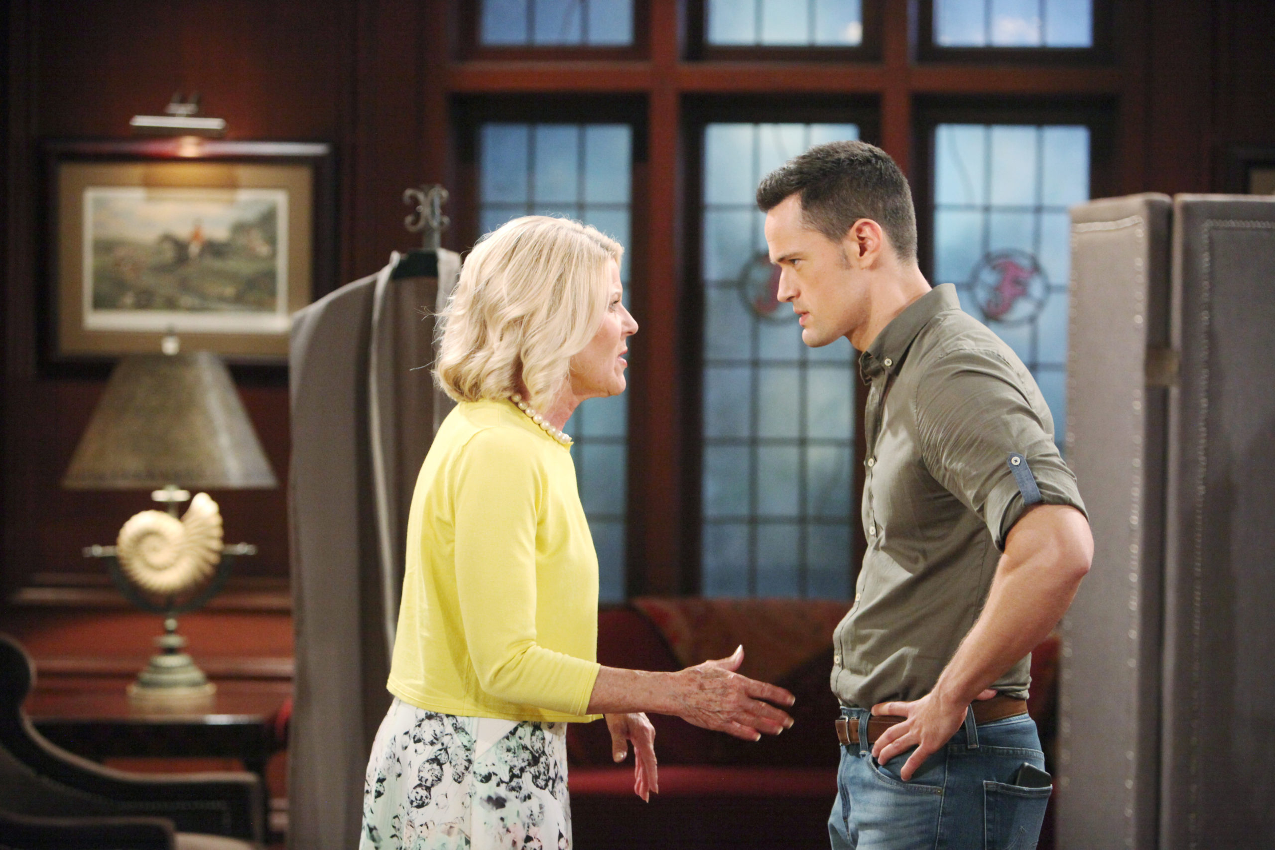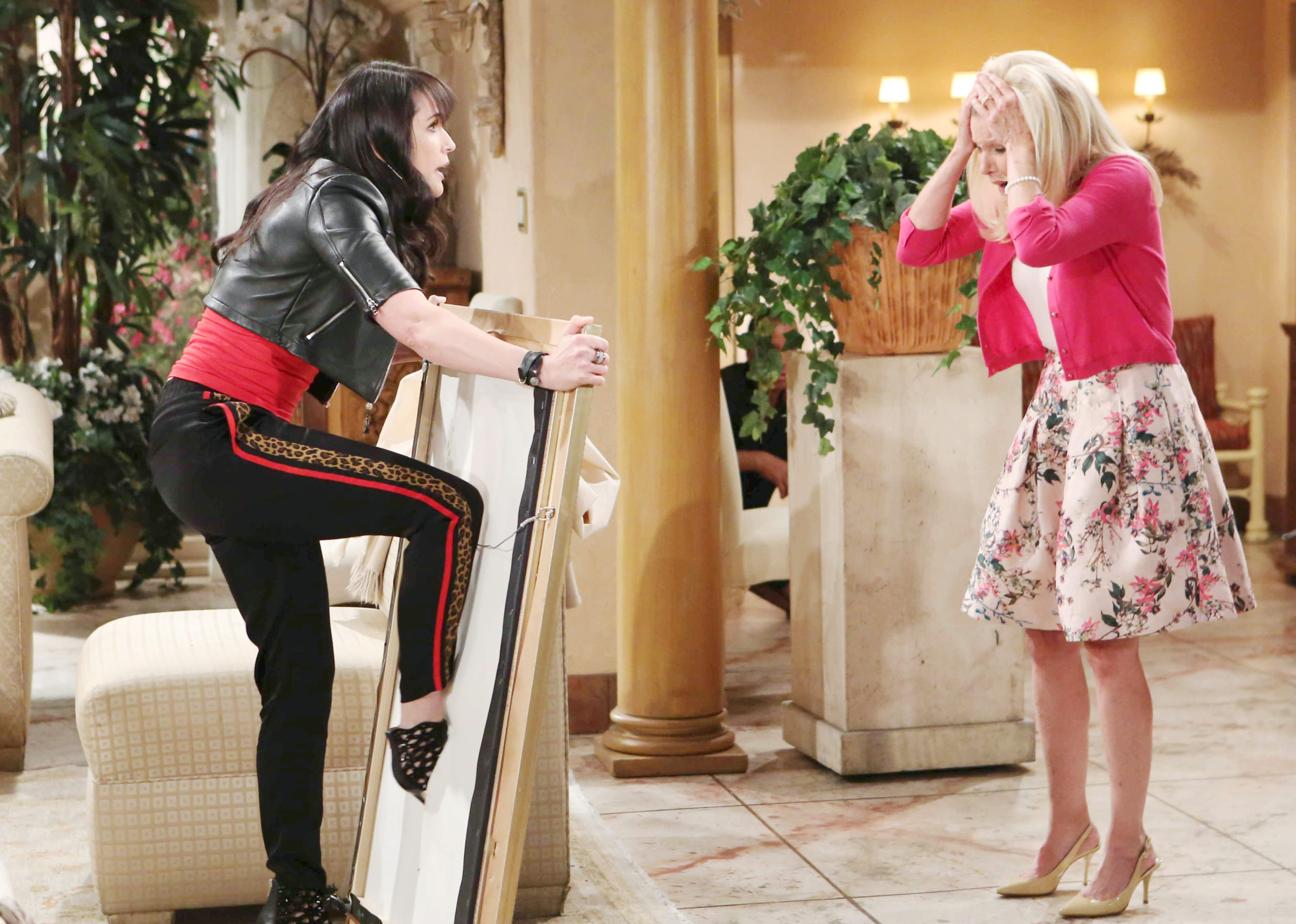 Rena Sofer, Alley Mills "The Bold and the Beautiful" Set CBS Television City Los Angeles, Ca. 09/27/18 © Howard Wise/jpistudios.com 310-657-9661 Episode # 7954 U.S.Airdate 10/25/18 JPI October 2018: Quinn (Rena Sofer) and Pam argued over whose portrait belonged over the fireplace — Pam lost. -