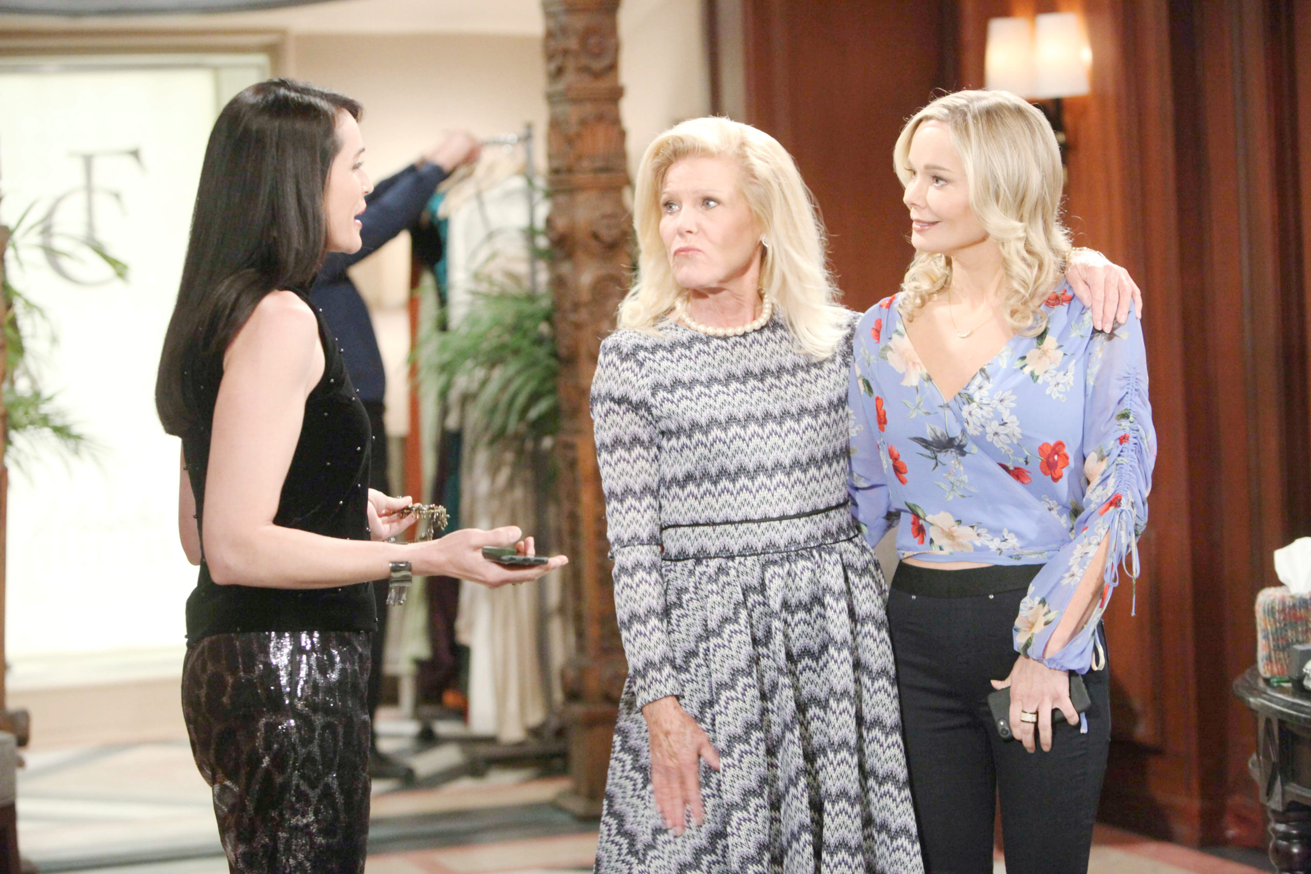 Jennifer Gareis, Alley Mills, Rena Sofer "The Bold and the Beautiful" Set CBS Television City Los Angeles, Ca. 10/17/18 © Howard Wise/jpistudios.com 310-657-9661 Episode # 7966 U.S.Airdate 11/12/18 JPI November 2018: To drive Quinn crazy, Pam enlisted Eric’s ex-wife Donna to come back to Forrester Creations. -
