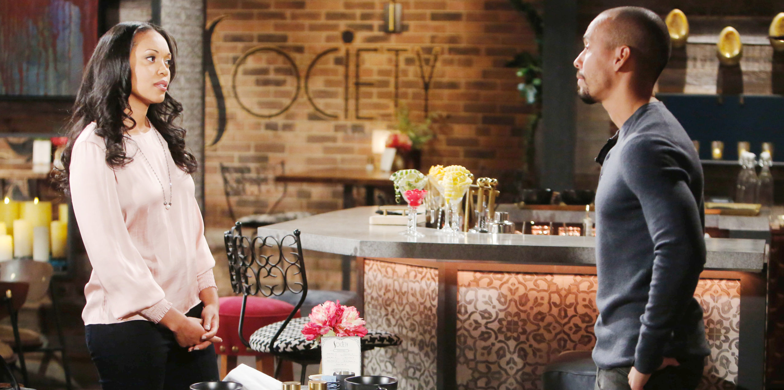 Bryton James, Mishael Morgan "The Young and the Restless" Set CBS television City Los Angeles 02/28/20 © Howard Wise/jpistudios.com 310-657-9661 Episode # 11908 U.S. Airdate 04/3/20 JPI Tune In Alert: Y&R’s Devon (Bryton James) lets his guard down with Amanda (Mishael Morgan). -