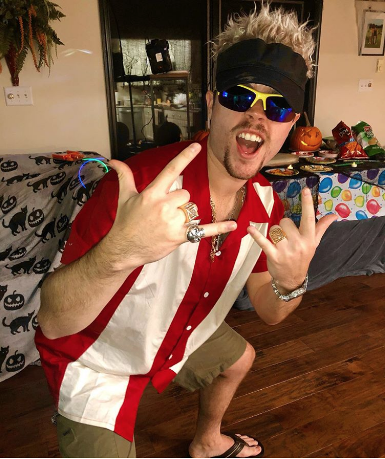 Instagram Eddie Alderson (ex-Matthew, ONE LIFE TO LIVE) dressed as Food Network’s Guy Fieri.