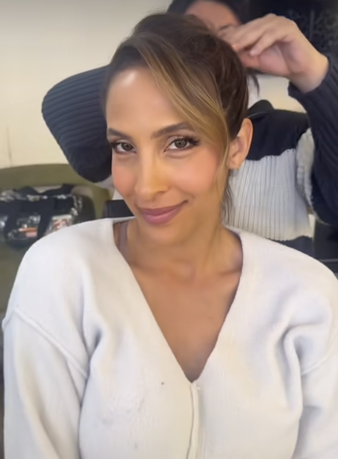 The photos include snaps taken backstage at Y&R and with some of her co-stars, as well as personal photos from home. One video shows her holding up her hand at husband Sam Restragno in an “L” shape playfully calling him a loser, and another captures Michelle Stafford (Phyllis) on set getting her makeup touched up while shooting a scene.
