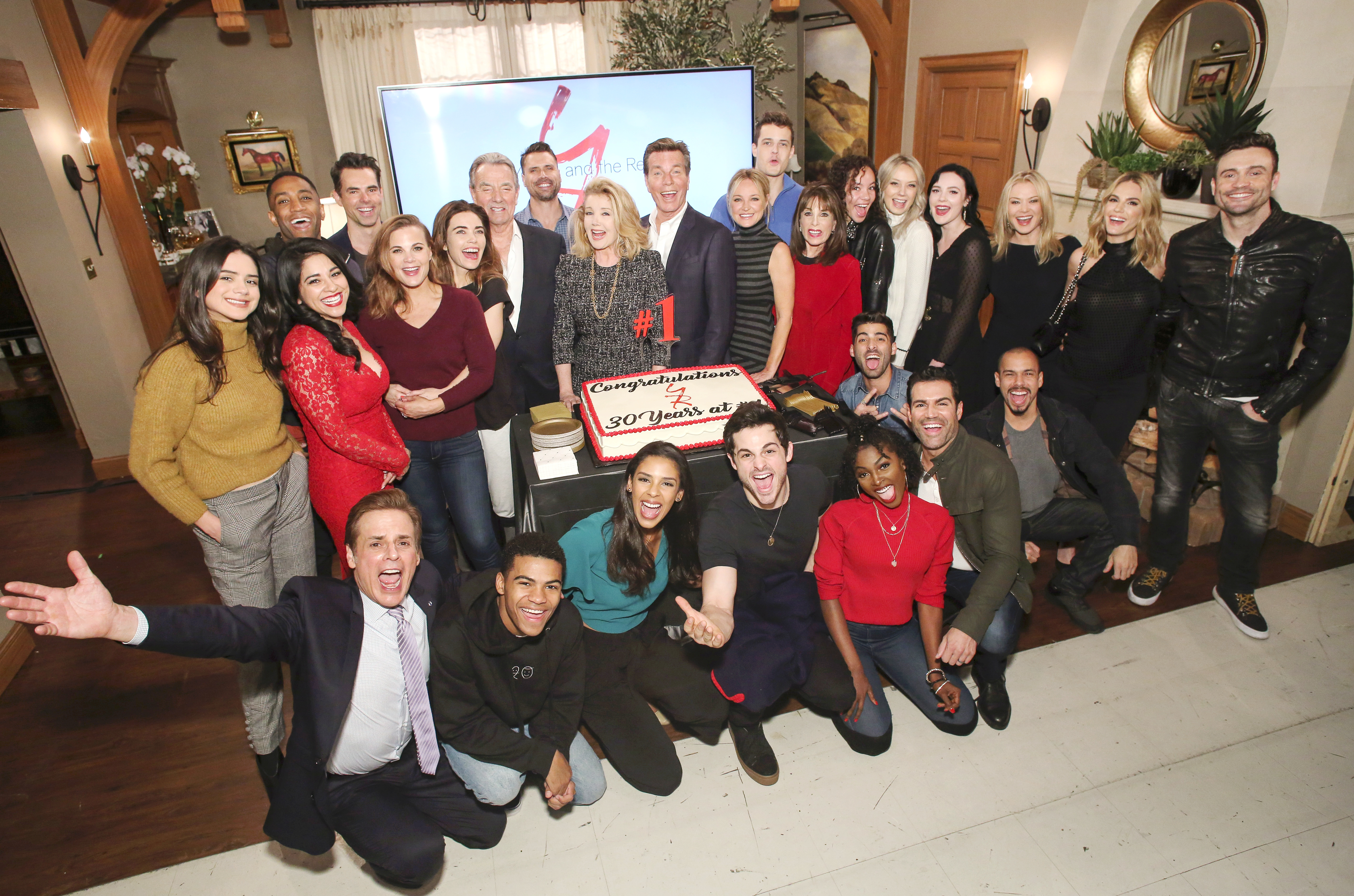 Melody Melody Thomas Scott, Peter Bergman, Cast "The Young and the Restless" Set Celebrating 30 Years at Number One CBS television City Los Angeles 01/17/19 © Howard Wise/jpistudios.com 310-657-9661 JPI The cast gathers around a cake celebrating the milestone. -